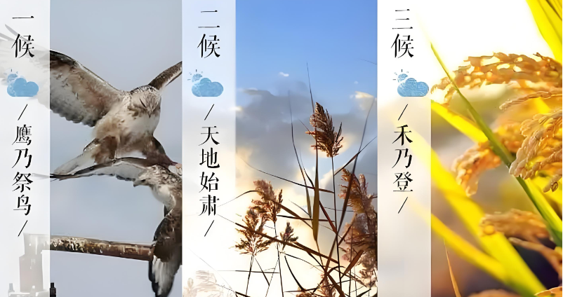 “禾”指的是各种稻谷,“登”就是成熟、收获的意思。处暑是水稻成熟的时候,田间地头盛满了喜悦,预示着丰收的到来。