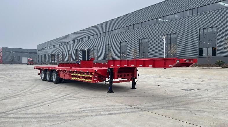 低平板半挂车车载部位无栏板,用途广泛,主要用于中长途货运运输。